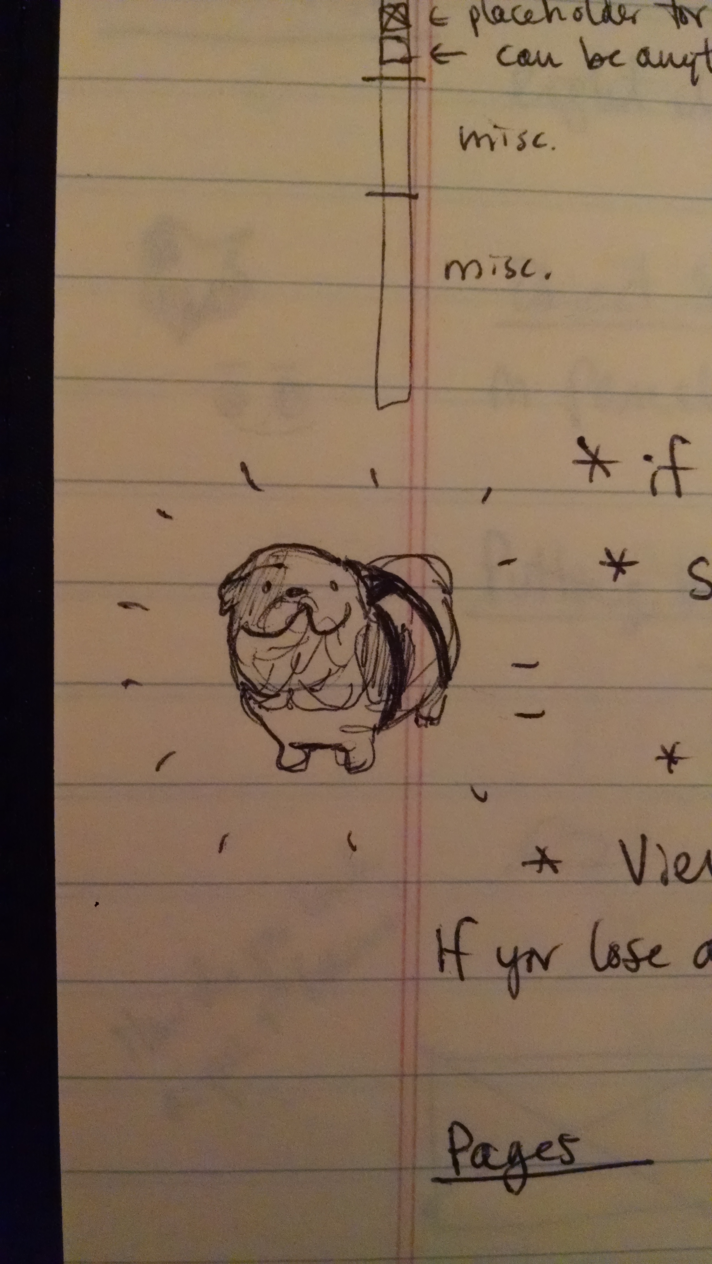 Class Doodles Doodles from my notes in the Adobe Suite classes I’m taking…because class is drawing time:/ Walrus This dog now lives in our neighborhood. His harness is red. Share this: Click to share on X (Opens in new window) X Click to share on Facebook (Opens in new window) Facebook Like Loading... Related Posted on April 7, 2015July 17, 2015 Posted in Doodles, Uncategorized